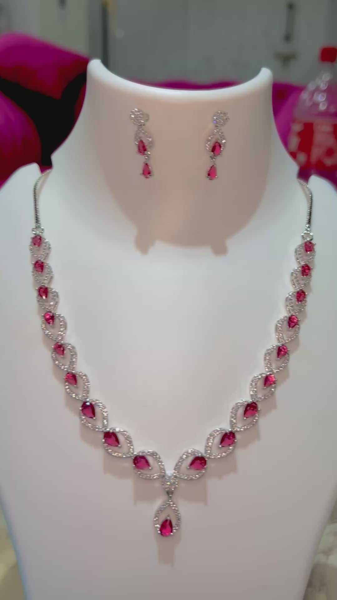 Elevate your ensemble with the Rani ka Haar, a stunning magenta-adorned necklace set paired with matching earrings. Expertly crafted to blend traditional elegance with vibrant color, this set enhances any occasion with its rich hues and intricate design. Perfect for those seeking a regal touch, it offers both style and sophistication in one exquisite package.